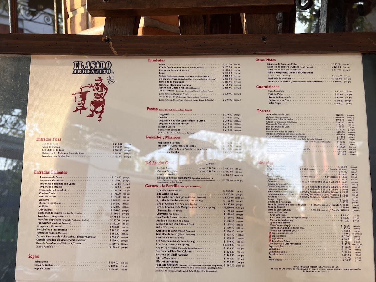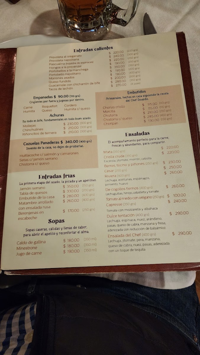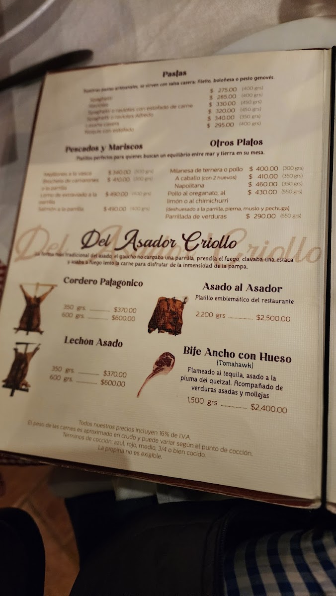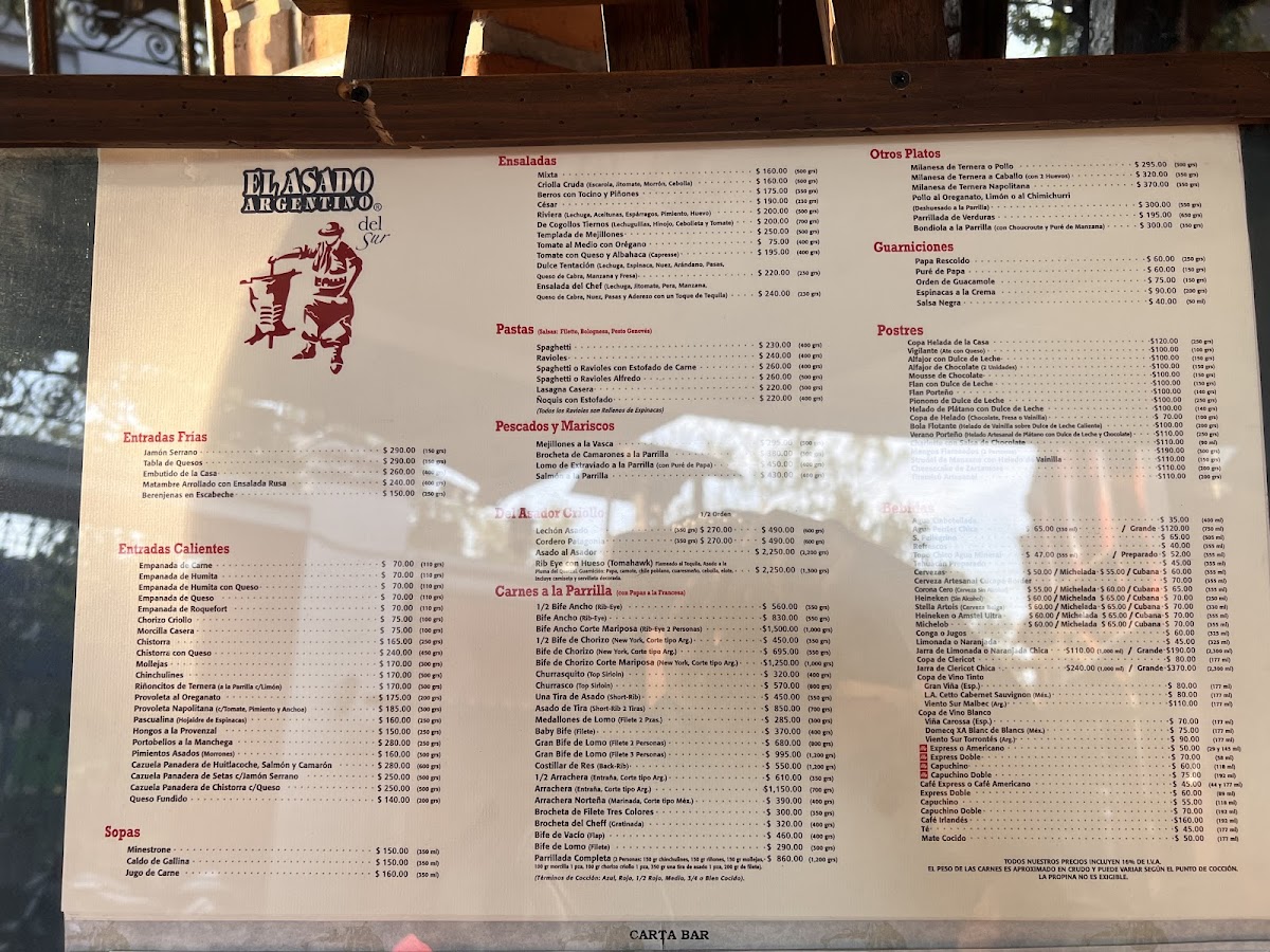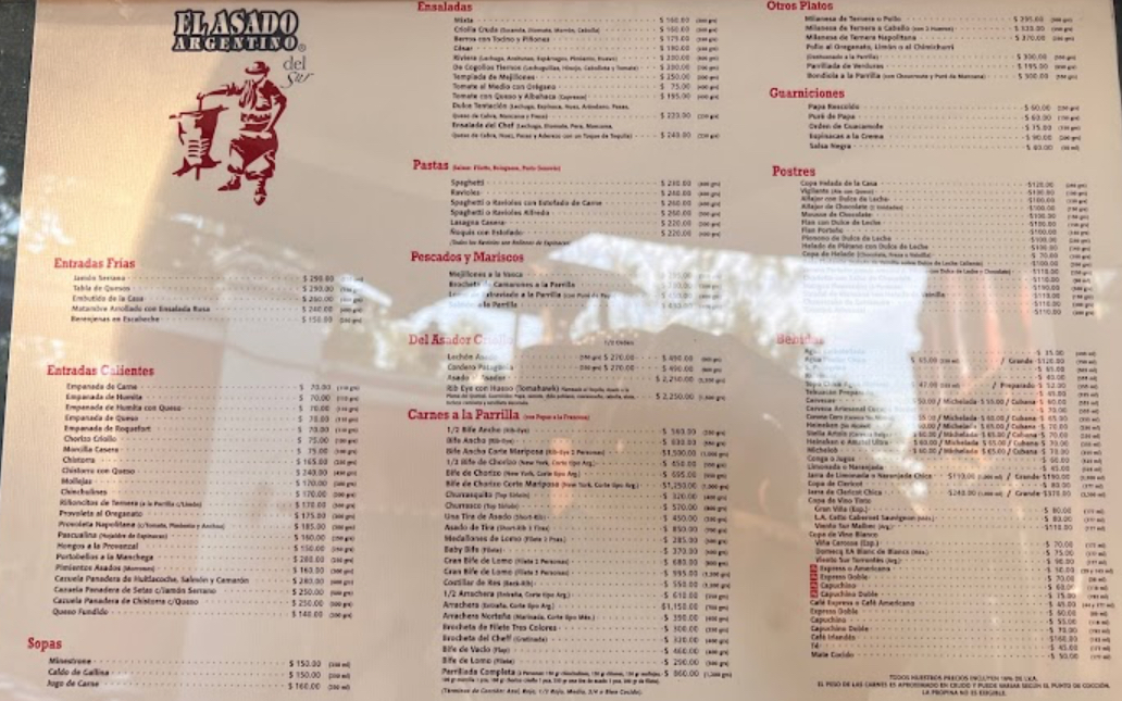 El Asado Argentino, located in the heart of Tlalpan, is a delightful haven for meat lovers and fans of Argentine cuisine. The menu showcases a diverse array of flavors, emphasizing traditional asado techniques that bring out the rich tastes of grilled meats. Highlighting the Del Asador Criollo section is the Asado Al Asador, a hefty 2,200 grams of perfectly cooked meat that promises a sensational culinary experience.